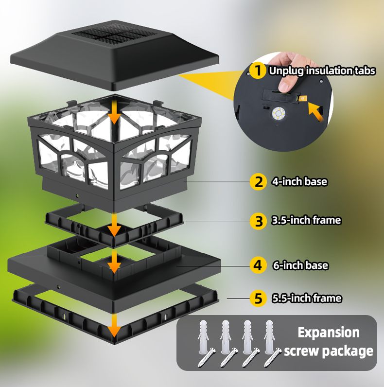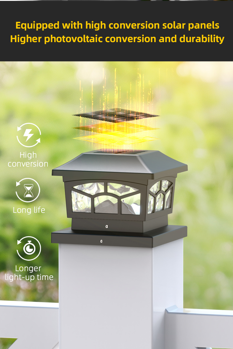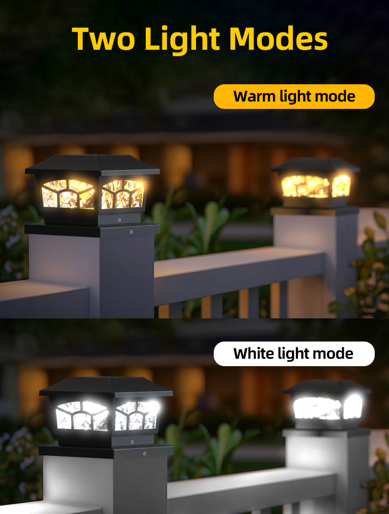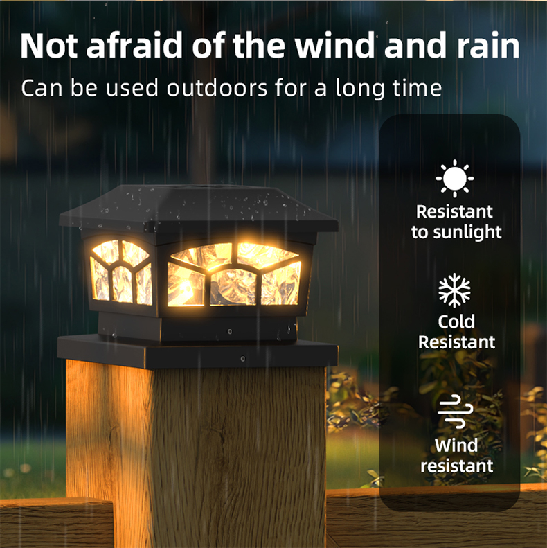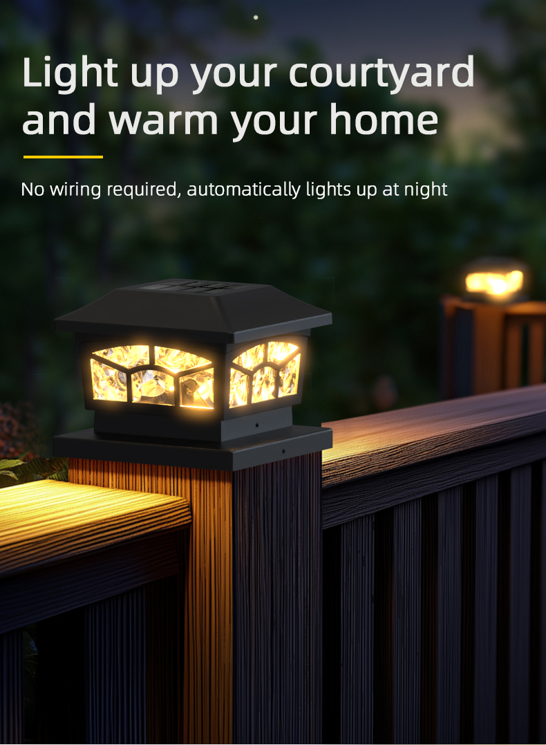 Išsami informacija apiemūsų 8 LED saulės stulpelio lemputės vandeniui atsparūs lauko žibintai: