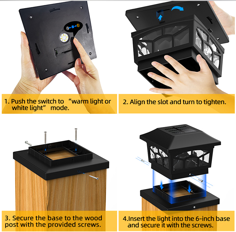 „Landsign“ dvigubo režimo saulės stulpelio lemputė „Solar Garden Light“ turi išmanią šviesai jautrią sistemą, atspari vandeniui lauke ir lengvai montuojama, tinka kiemo dekoravimui, sodui ir kt. Du apšvietimo režimai, galite laisvai pasirinkti savo mėgstamą apšvietimą. Dviejų režimų saulės stulpelio lemputė saulės sodo šviesa gali būti pritvirtinta prie sienos pateiktais varžtais per kelias sekundes, nereikia kabelio ar laido.